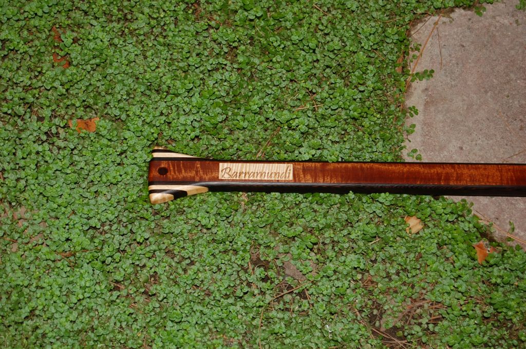 This custom boat net was commissioned by a son to his father before embarking on a 6 month sail, alone, to the Sea of Cortez. The name of his ship, "Barramundi" was laser engraved into curly maple, and then inlaid into the handle.