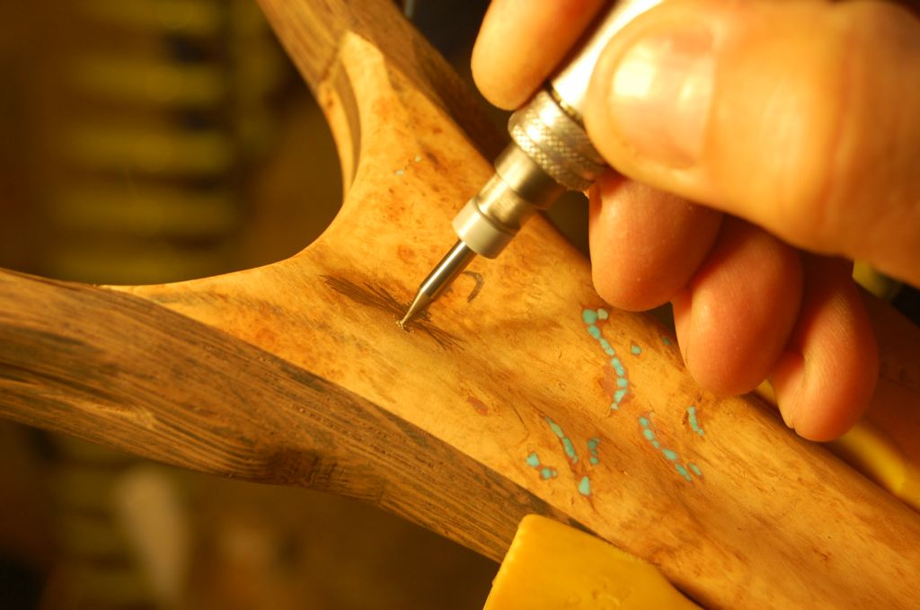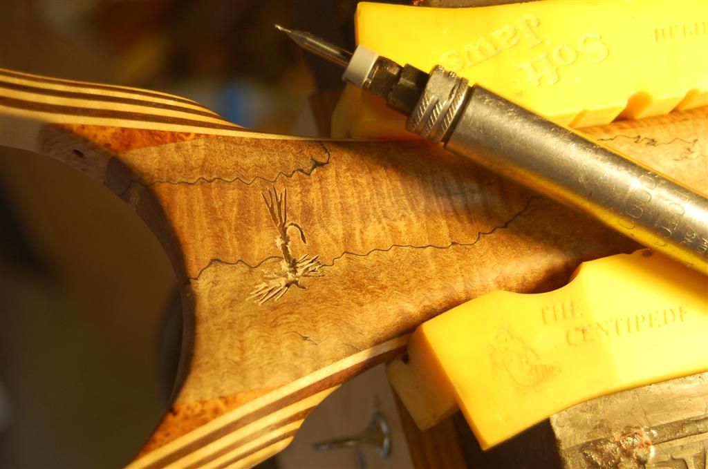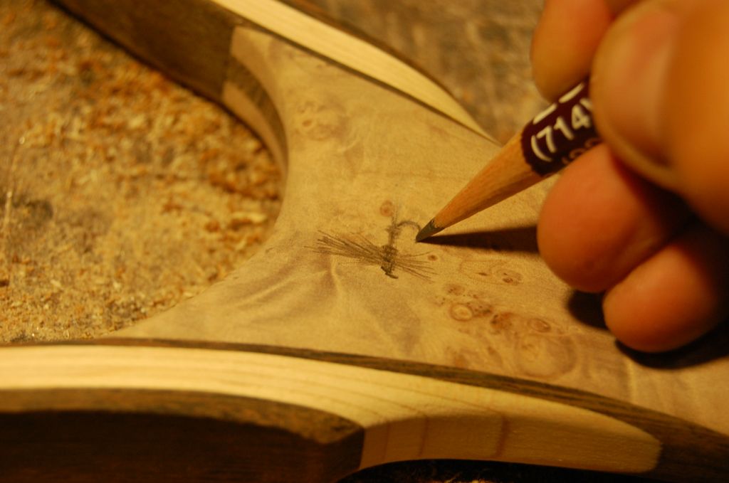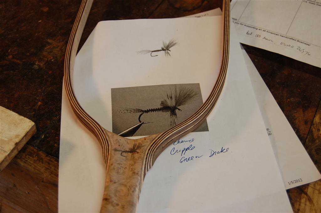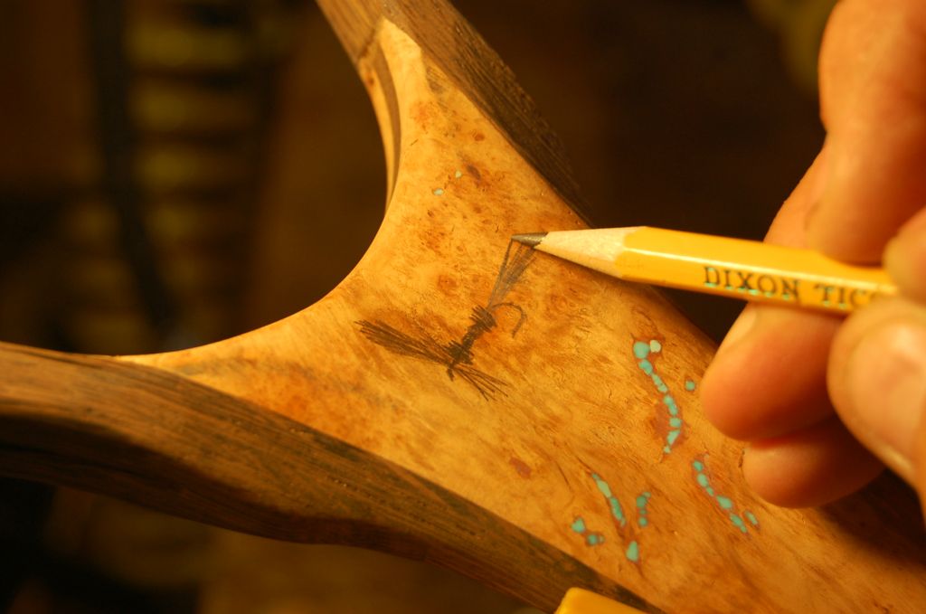 Many Clients request their go-to fly to be inlaid on the handle. This gallery shows many of the flies I have done, and a bit about the process.